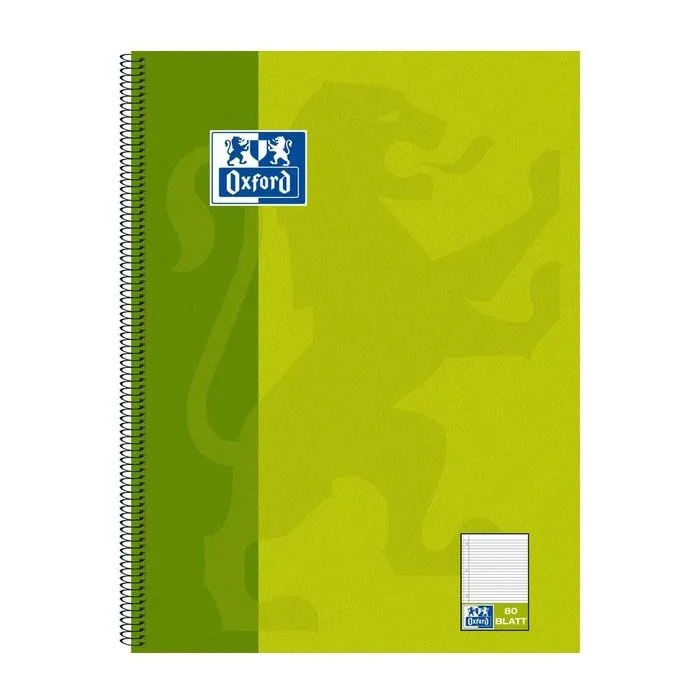 Cahier à spirale format A4+ 160 pages lignées - Vert OXFORD