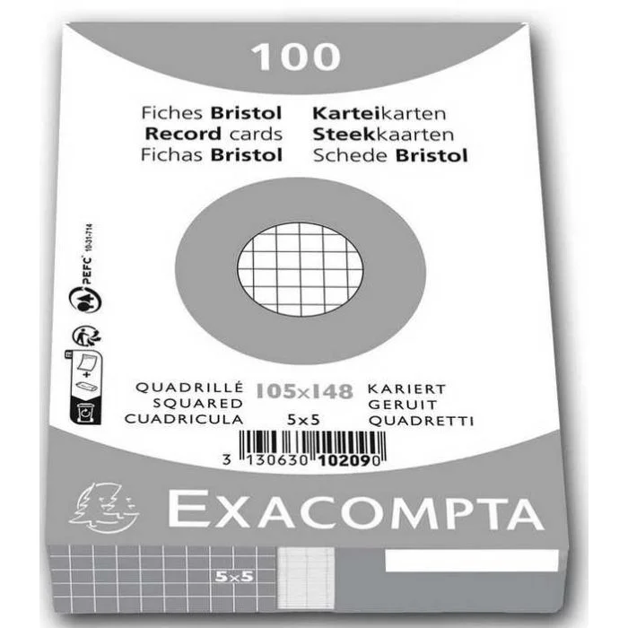 Fiches bristol quadrillées 105 x 148 mm Blanc Exacompta pour notes et mémos de qualité. N° article 10209E