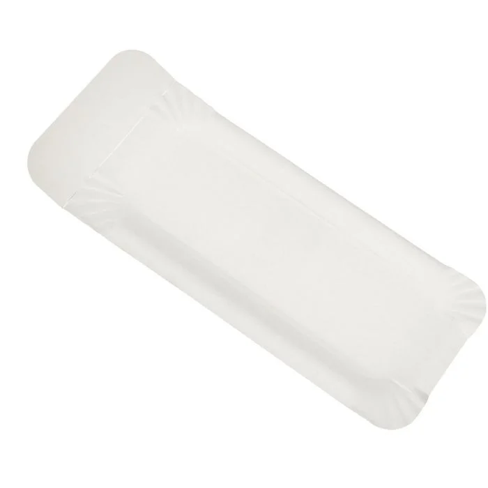 Assiettes rectangulaires en carton pour saucisse 80 x 210 mm PAP STAR Pure. N° article 11030 P