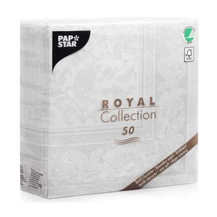 Lot de 50 Serviettes en papier - Blanc - 400 x 400 mm PAPSTAR ROYAL Collection Ornements
