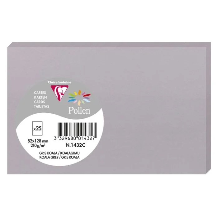 Carte en papier - 82 x 128 mm - Gris Koala POLLEN Lot de 25