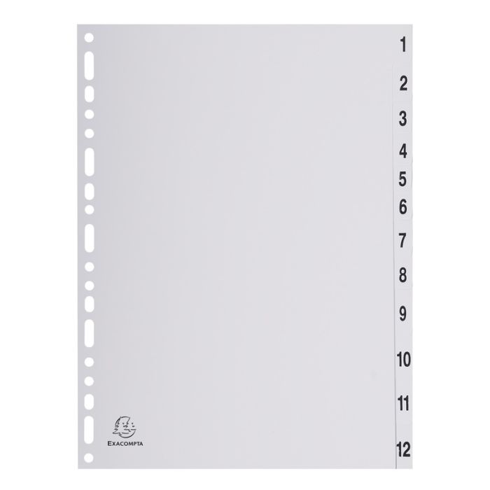 Intercalaires numériques en PP gris avec touches imprimées 1 à 12, 225 x 297 mm EXACOMPTA. N° article 1912E