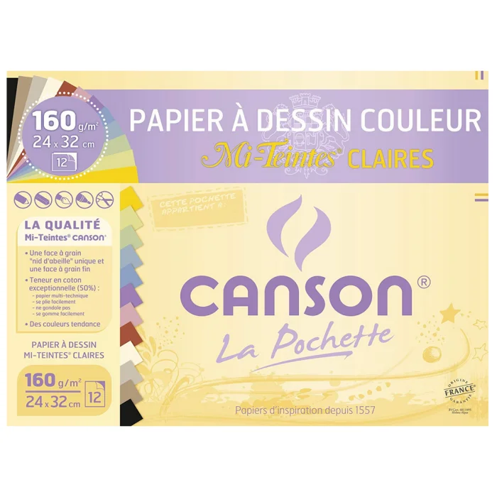 Assortiment de feuilles Mi-teintes claires 32 x 24 cm en pochette de CANSON. N° article 200002789