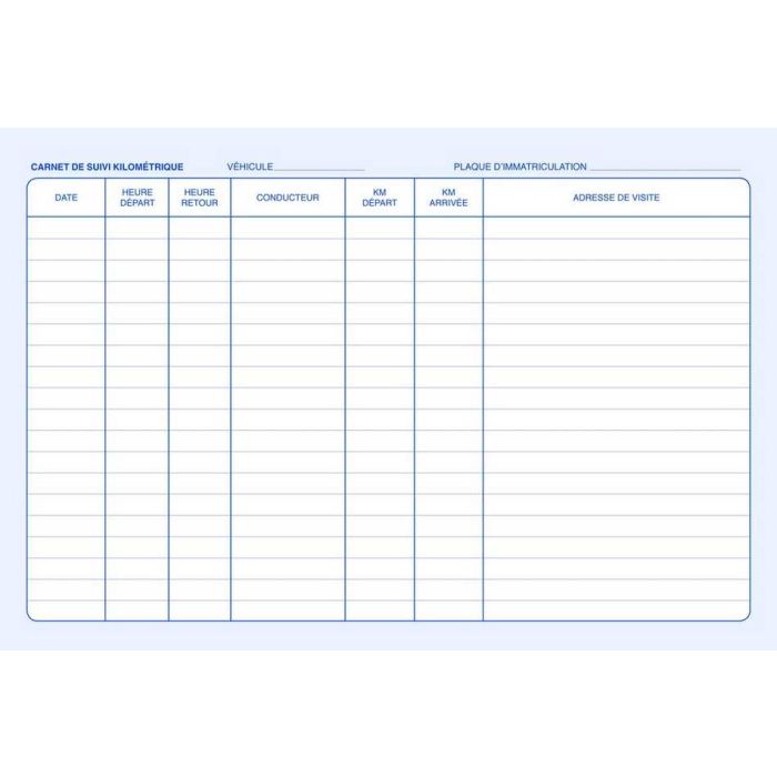 - Indications : Conducteur, KM départ et arrivé, KM parcourus, Plaque d'immatriculation, Lieu de déplacement, etc.