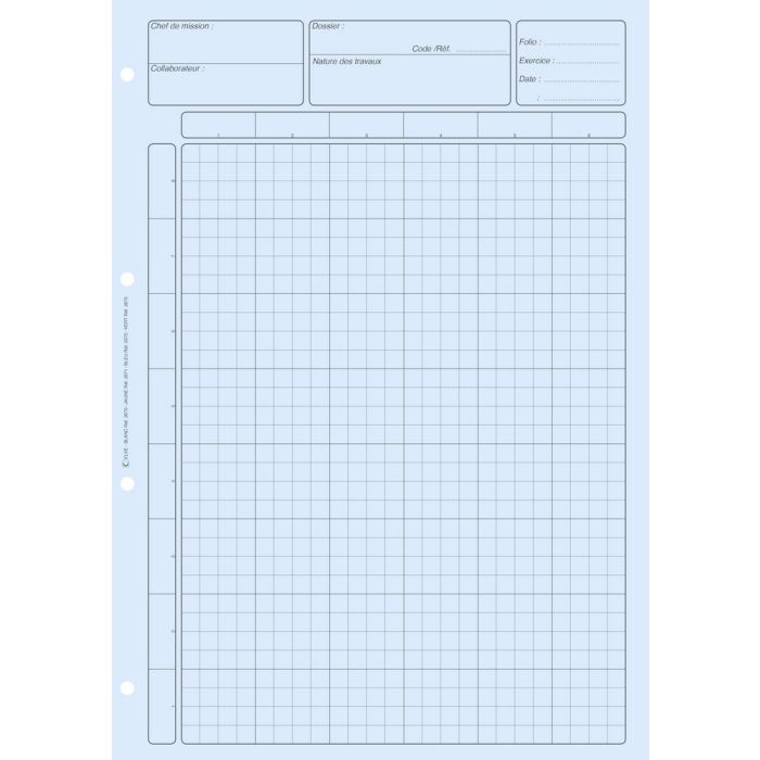 Bloc de 80 Feuilles de travail Bleues pour les Audits et Révisions comptables, notes de contrôle. N° article 2672