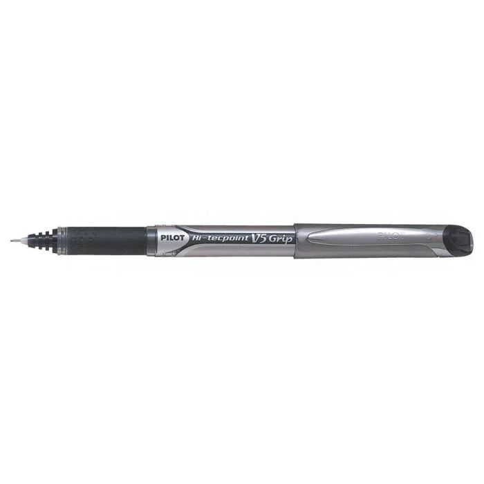 Stylo à capuchon roller à encre infalsifiable couleur Noir PILOT Hi-Tecpoint V5 Grip. N° article 279690