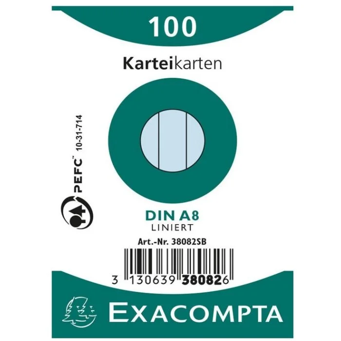 Fiches Bristol quadrillées et perforées - 125 x 200 mm - Assortiment EXACOMPTA Lot de 100Référence : AP03-13653E