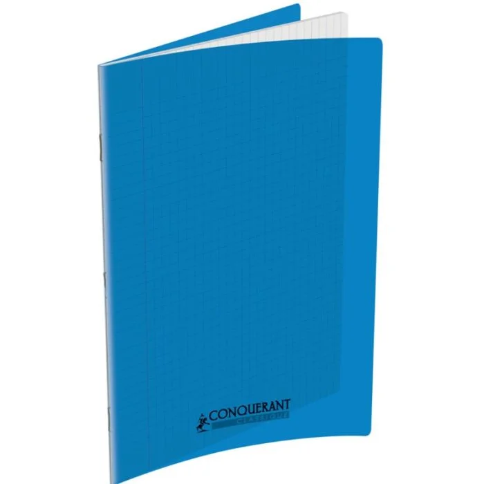 Cahier d'écolier grands carreaux 170 x 220 mm avec une couverture en Polypro Bleu Pastel CONQUERANT de 96 pages. N° article 100902114