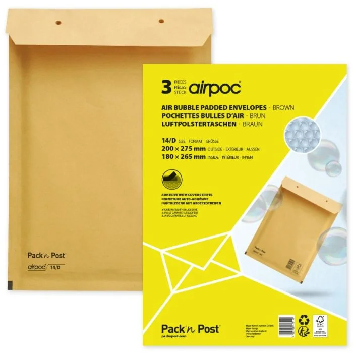 Pochettes d'expédition marron matelassées 200 x 275 mm AIRPOC, pour supports de données, cadeaux publicitaires ou petits outils de MAIL MEDIA. N° article 30002582