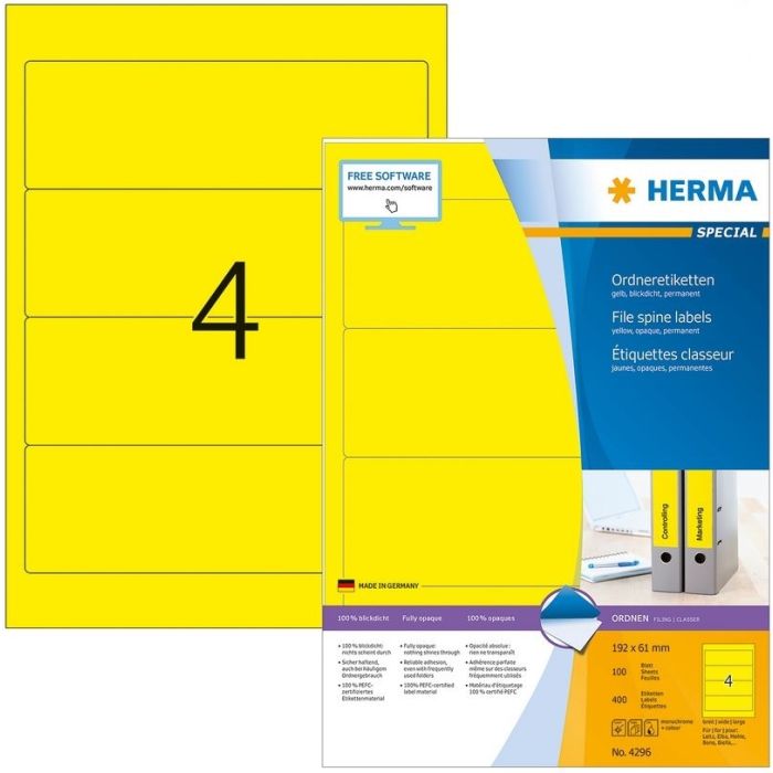 Etiquettes Dos de classeur SPECIAL - 61 x 192 mm - Jaune HERMA Lot de 400
