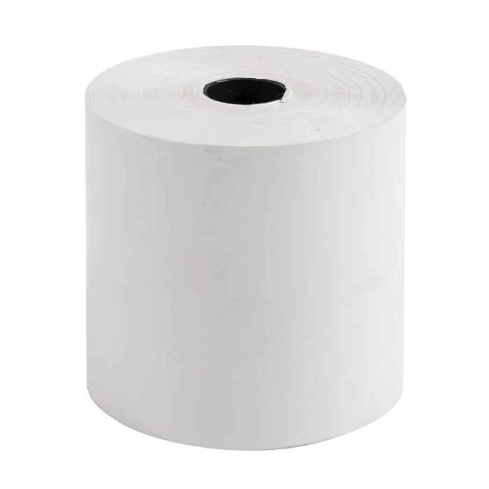Rouleau de papier thermique blanc 80 x 68 x 12 mm, sans BISPHENOL A pour imprimer les tickets de caisse. N° article 44819E