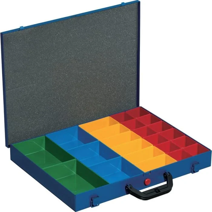 Valise de rangement solide avec 23 godets pour petits outils, vis, petites pièces, etc. N° article 454128