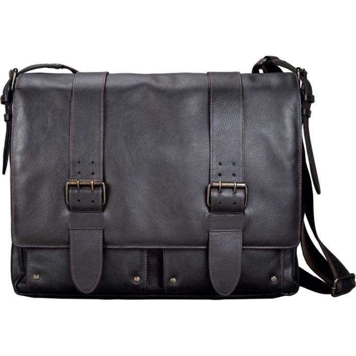 Besace à bandoulière en cuir marron foncé Tank de PRIDE et SOUL pour ordinateur 15 pouces et documents. N° article 47135