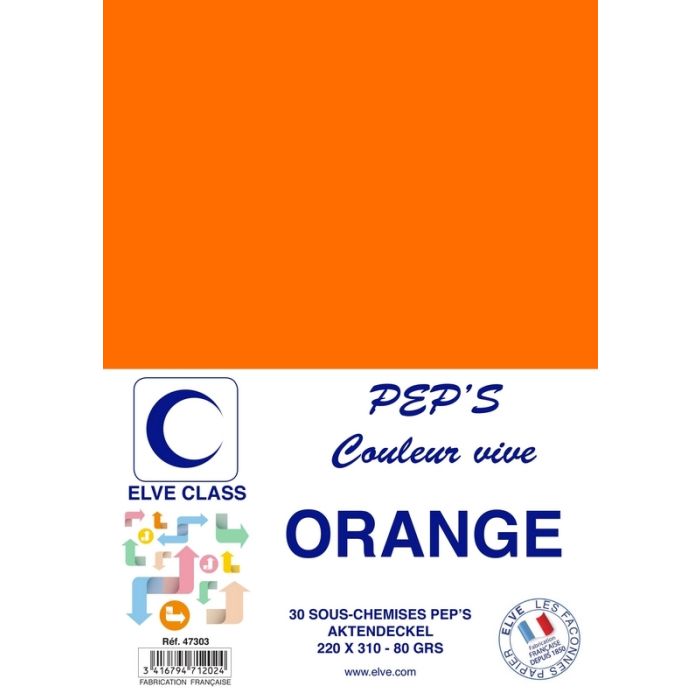 Sous-chemises Orange pour dossier de format A4 ELVE Pep's Lot de 30. N° article 47303