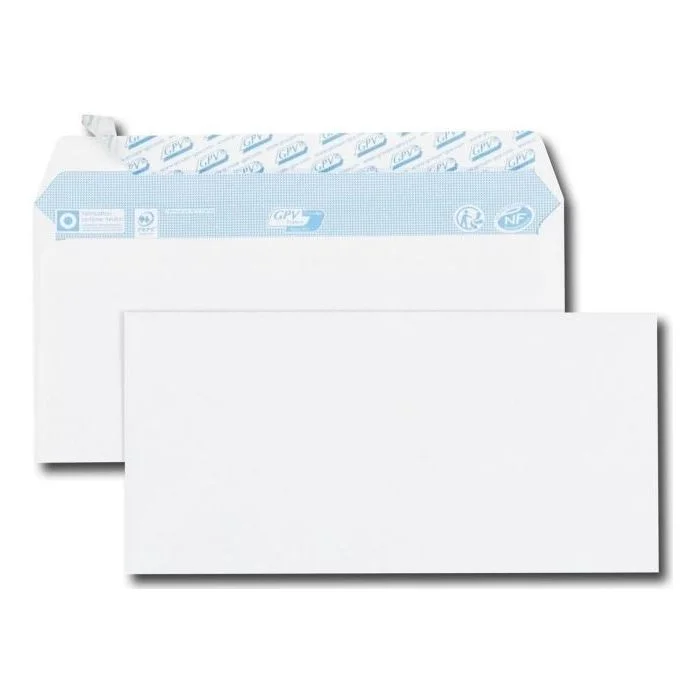 Enveloppes à fermeture auto-adhésive sans fenêtre format DL 110 x 220 mm GPV Office. N° article 6261