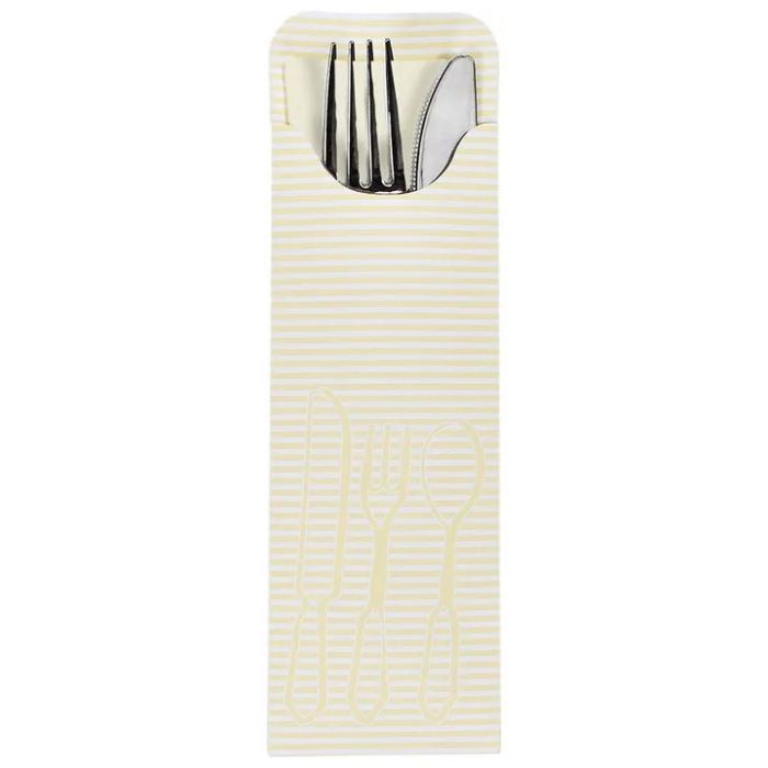 Pochettes à couverts avec serviette de couleur Crème de PAP STAR pour restaurant et traiteur. N° article 81014