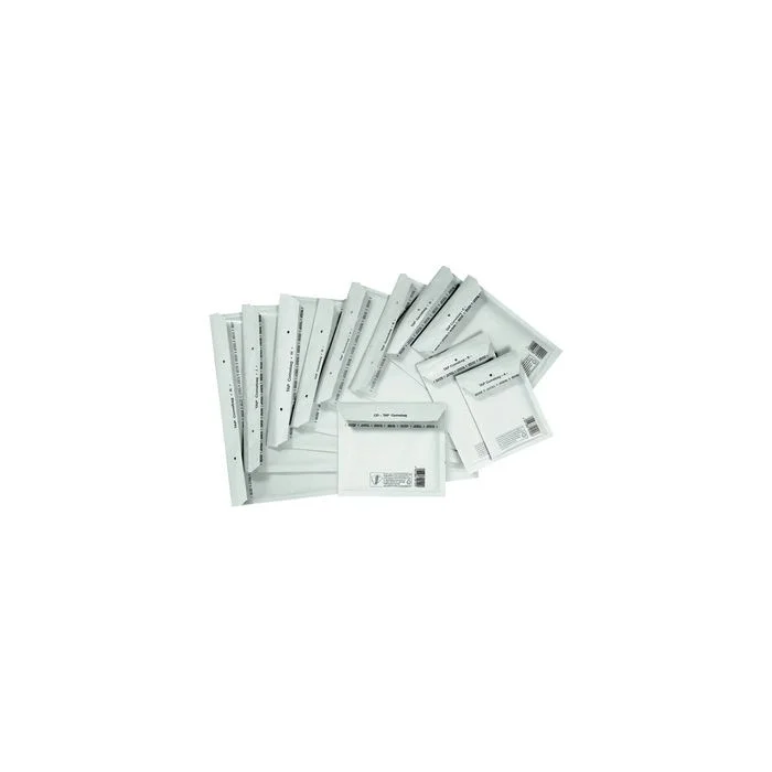 Petites Enveloppes matelassées à bulles d'air blanches 120 x 175 mm pour l'expédition de documents et d'objets. Pochettes TAP COMEBAG. N° article 81020000