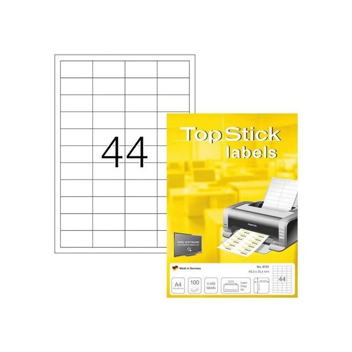 Petites Etiquettes autocollantes permanentes 48,3 x 25,4 mm à imprimer pour étiquetage et marquage de TOP STICK. N° article 8731