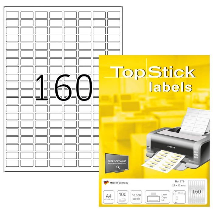 Étiquettes adhésives blanches - 22 x 12 mm TOP STICK pour copieurs, imprimantes laser et jet d'encre. N° article 8791