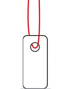 Étiquettes à suspendre avec trou et ficelle blanche.