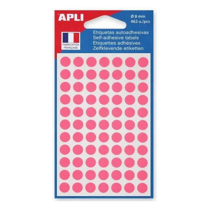 Petites gommettes adhésives APLI de couleur Rose de 8 mm : Praticité et visibilité garantie. N° article 111838