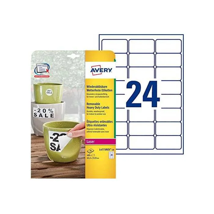 - 20 planches A4 par pochette, soit 480 étiquettes amovibles.