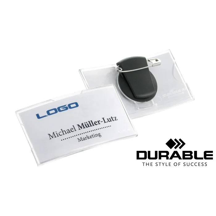 Badges convexes avec pince combi - 75 x 40 mm DURABLE Lot de 25