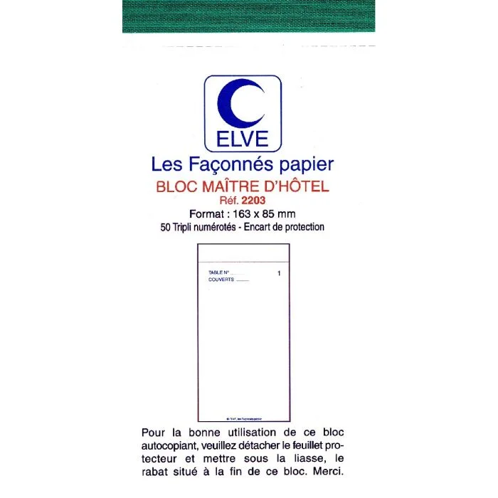 Bloc MAITRE D'HOTEL - Autocopiant Tripli - 165 x 85 mm ELVE