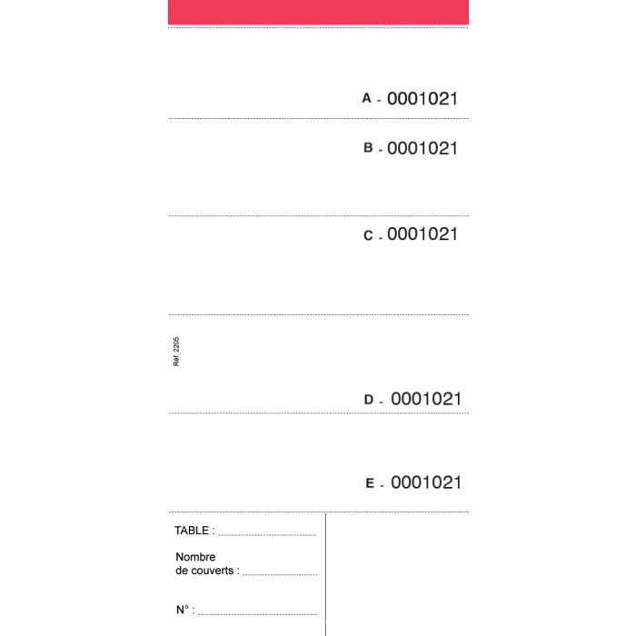 Bloc Brasserie pour la prise de Commande avec 5 coupons détachables 200 x 96 mm ELVE. N° article 2205