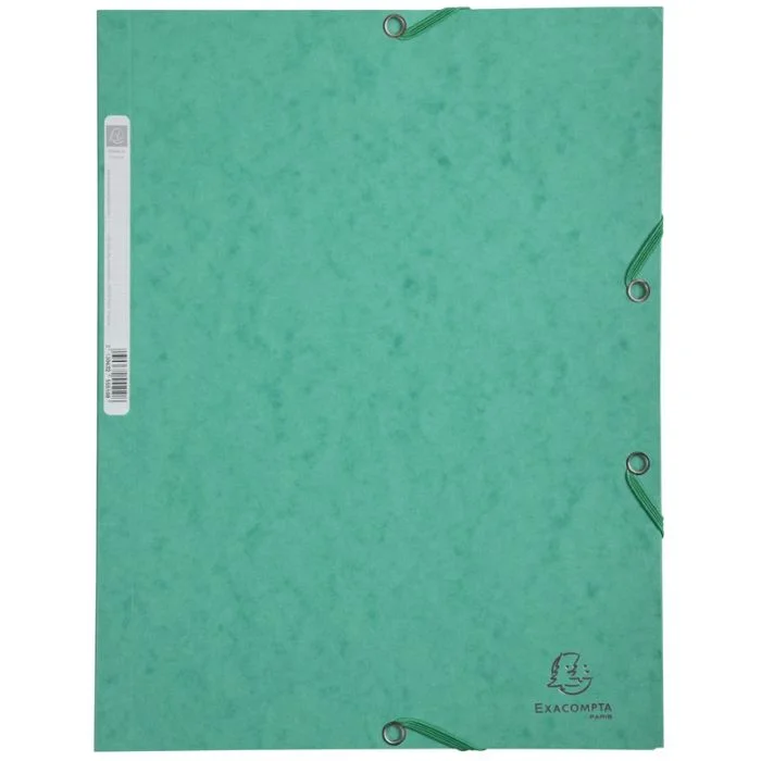 Chemise à élastiques 3 rabats carte lustrée 400g couleur Vert EXACOMPTA. N° article 55503E