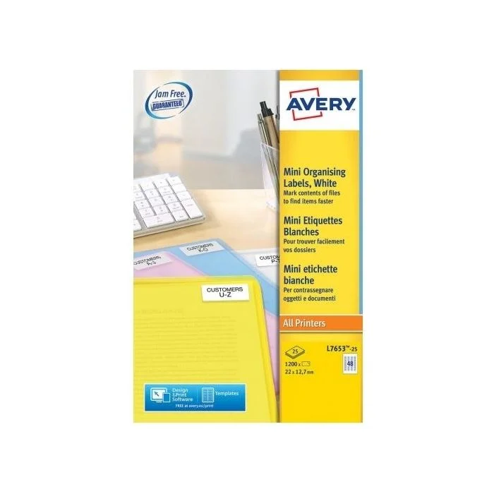 Mini-étiquettes - 22 x 12,7 mm - Blanc AVERY L7653 Lot de 1200