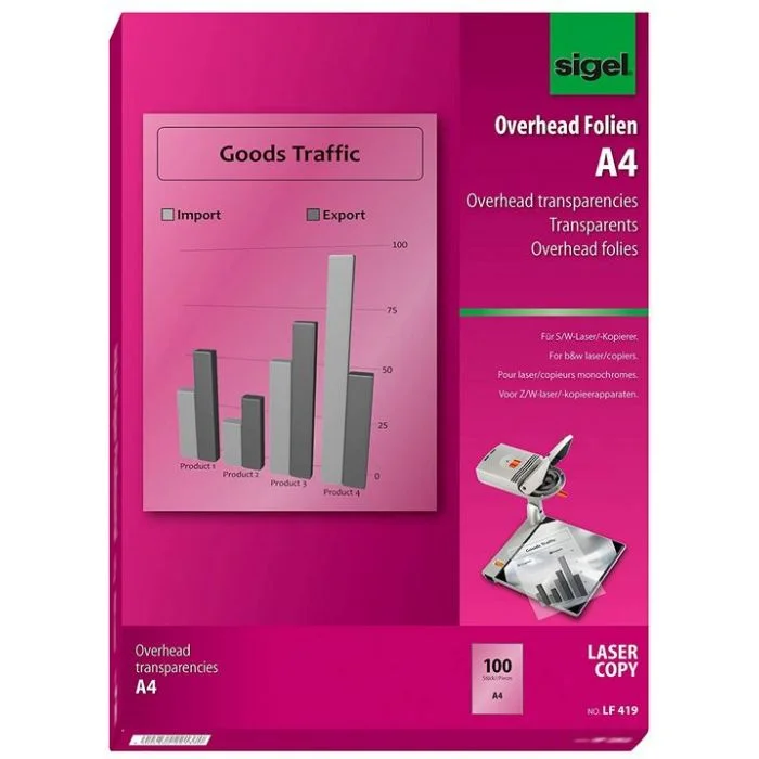 Film transparent A4 pour réaliser des diapositives, des reportings, des Présentations au rétroprojecteur de Sigel. N° article LF419