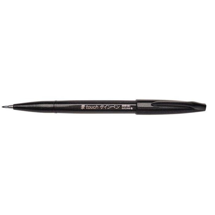 Stylo feutre Noir à pointe fine et flexible pour une écriture facile Sign Pen SES15 PENTEL ARTS. N° article SES15C-A