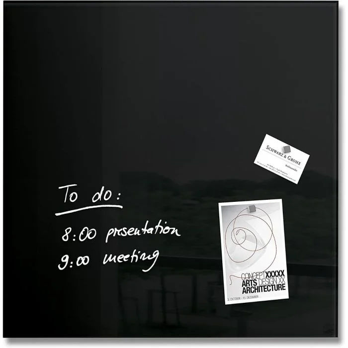 Tableau en verre ARTVERUM magnétique et inscriptible couleur Noir Format 480 x 480 mm SIGEL GL110. N° article GL110